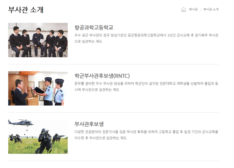 • 공군 핵심 가치(애국심, 헌신, 책임감)와 연결될 수 있는 성장 과정을 제시합니다.
