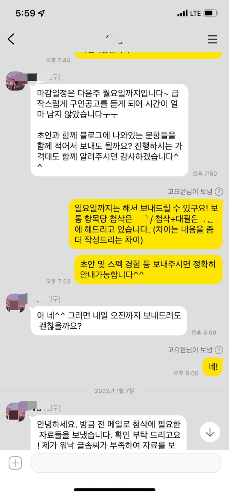 • >> STEP 4. 초안 작성 및 1차 피드백: 전문가가 직접 초안을 작성한 후, 지원자님과 함께 내용을 검토하며 1차 피드백 반영.