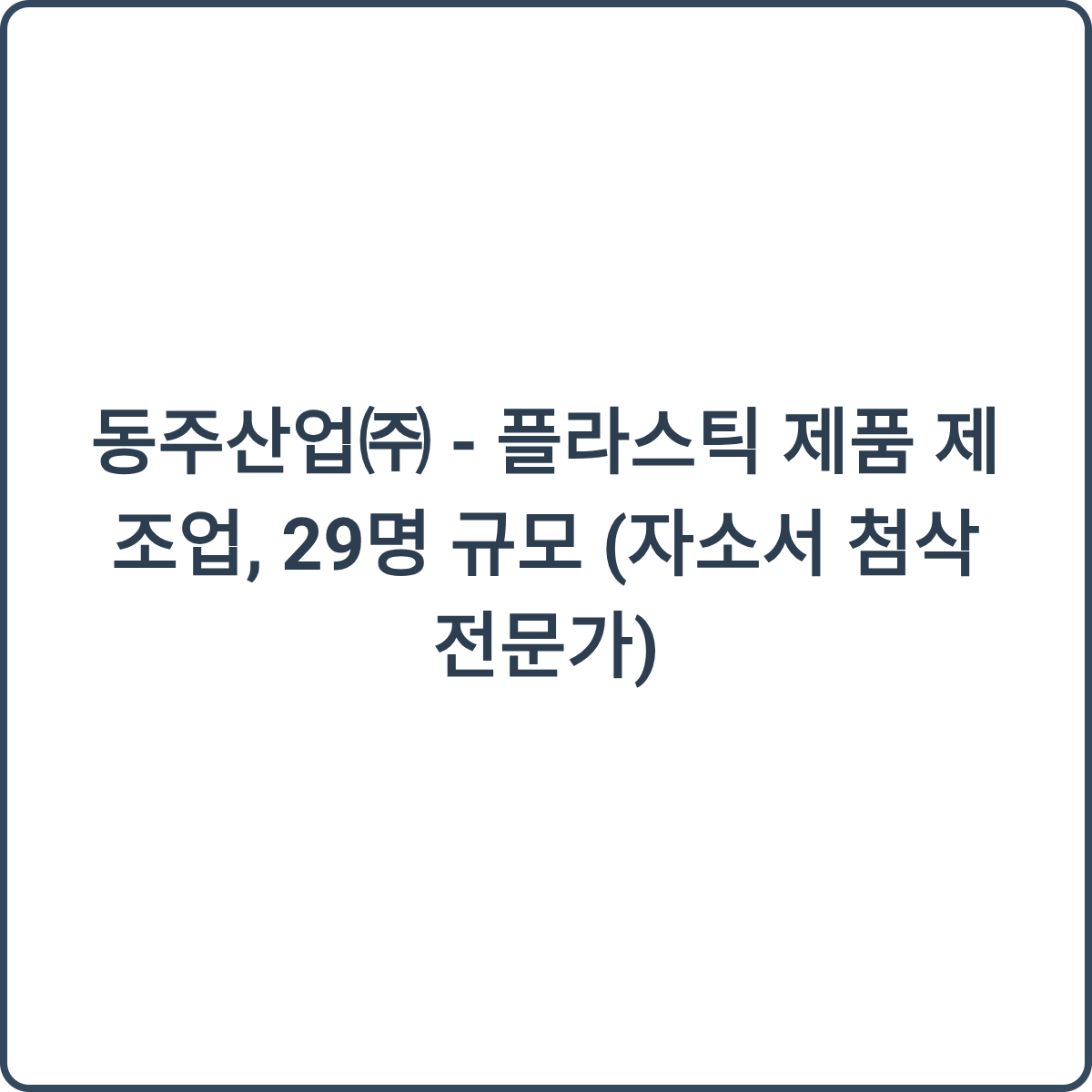 동주산업㈜ – 플라스틱 제품 제조업, 29명 규모 (자소서 첨삭 전문가)