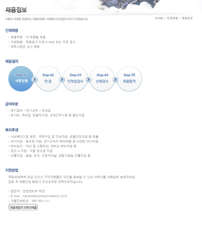 무림파워텍은 다음과 같은 인재를 찾고 있습니다: