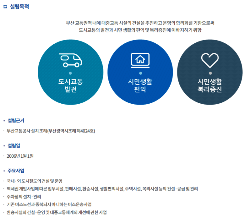 - ✔️ 주요사업: 도시철도 운영 및 유지보수, 신교통수단 도입 연구, 대중교통 환승 시스템 개선, 철도안전관리 시스템 고도화 등