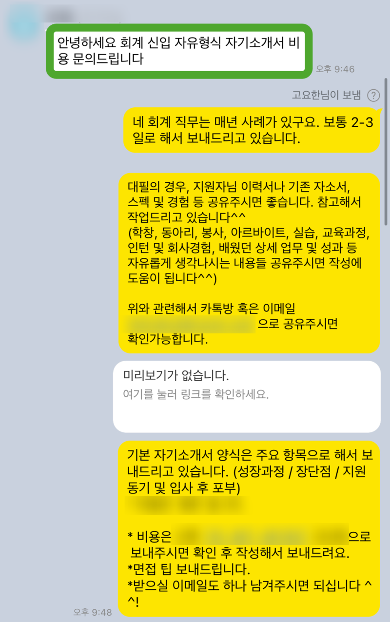 • >> 결제 및 자료 공유: 결제 완료 후, 이력서, 자기소개서 초안, 공고 등을 공유받습니다.