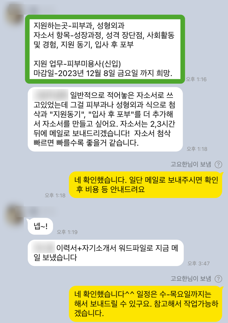 ✨ 모든 기업 자소서 첨삭, 작성 대행, 대필 가능합니다!