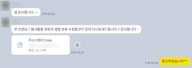 자소서 첨삭, 어떻게 진행됐을까요?