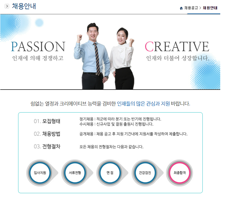 - 인재상: 창의적이고 혁신적인 인재, 고객을 최우선으로 생각하는 인재, 사회적 책임을 다하는 인재