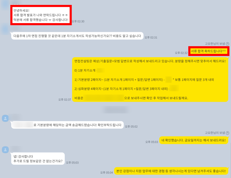 저와의 1:1 자소서 첨삭/대필 의뢰는 다음과 같이 진행됩니다.