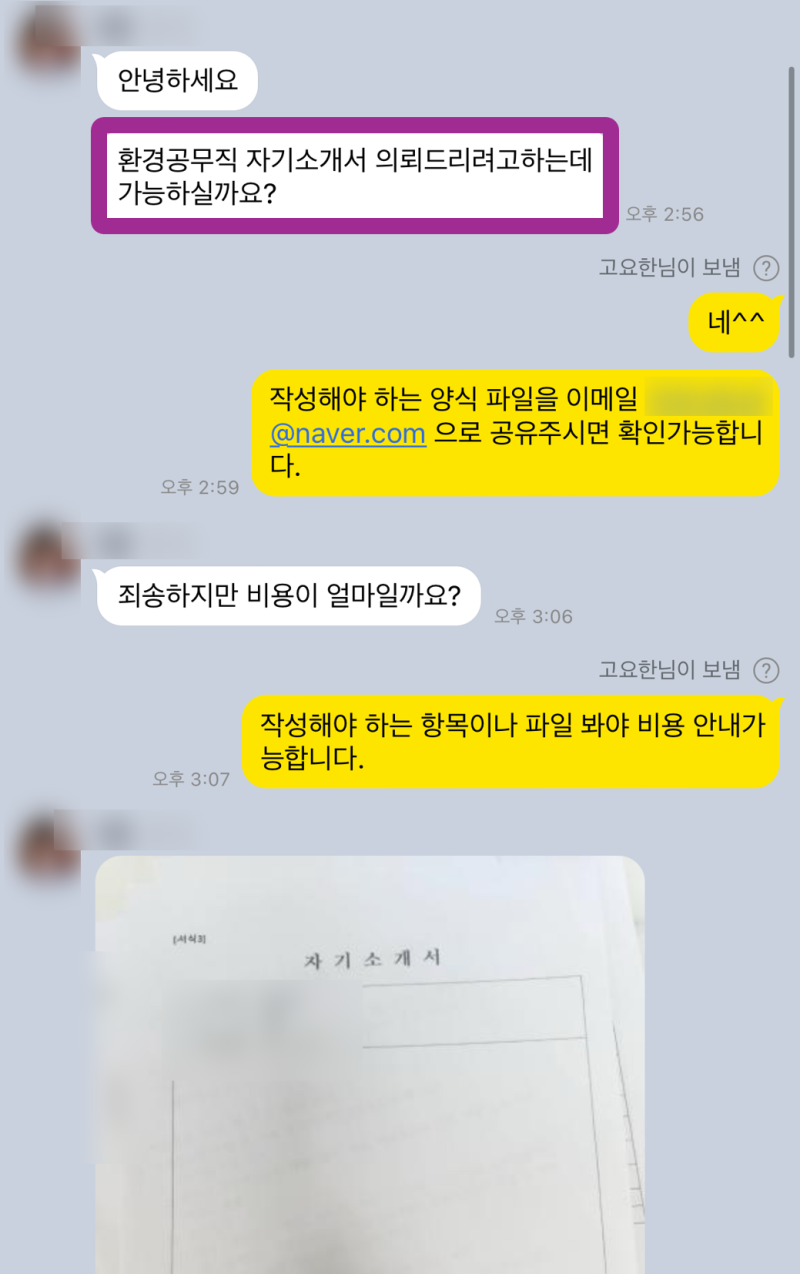 >> 문의 및 상담 신청: 지원 직무, 경력, 희망하는 서비스(첨삭/대필) 등을 말씀해주세요. 📞