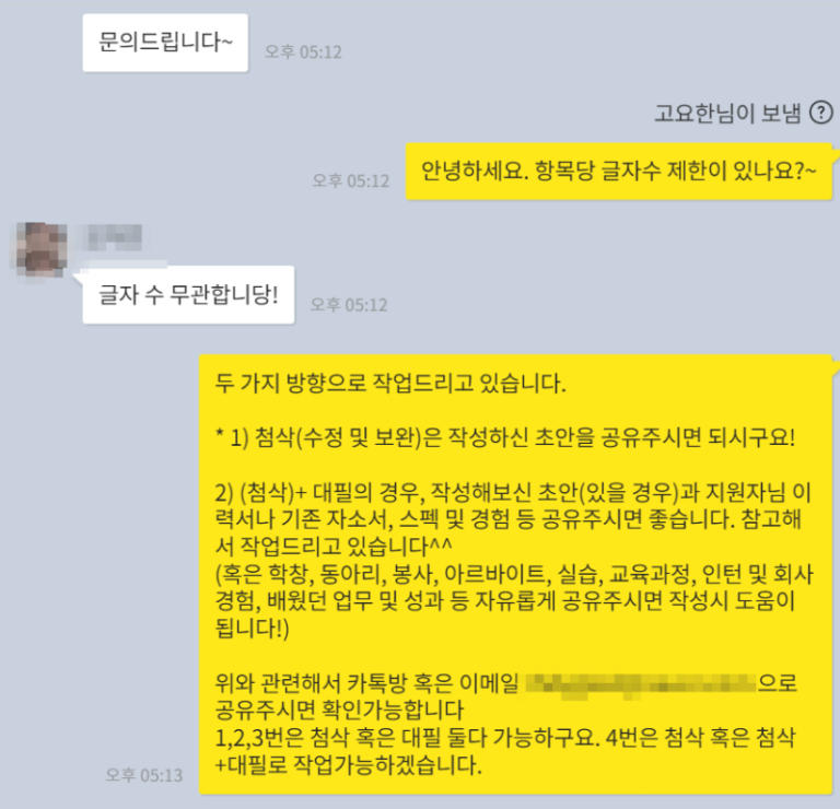 [합격] 자소서 첨삭 대필 합격후기
