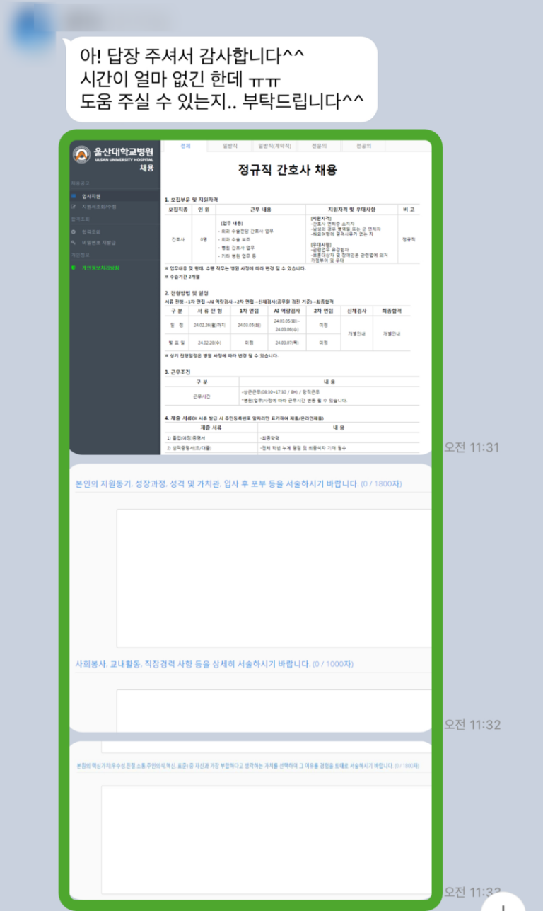 대학병원 자소서 첨삭 후기