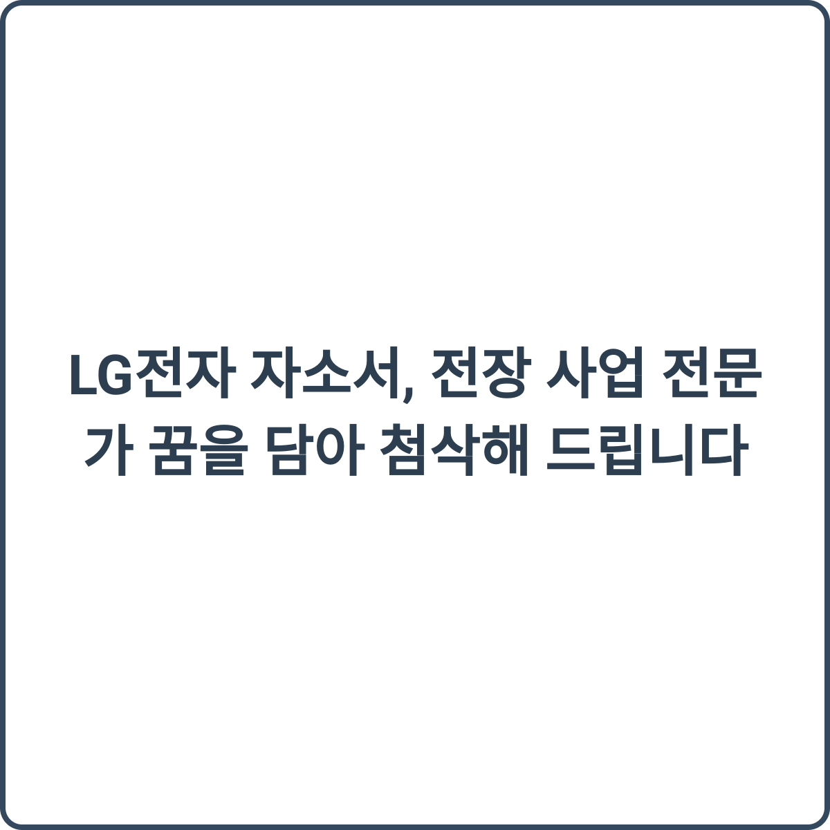 꾸준한 자기소개서 첨삭과 피드백을 통해 완성도를 높이고, 자신만의 강점을 명확히 표현해 보세요. 여러분의 꿈을 LG전자 전장 사업 전문가로 실현하는 데 도움이 되길 바랍니다! 🚀
